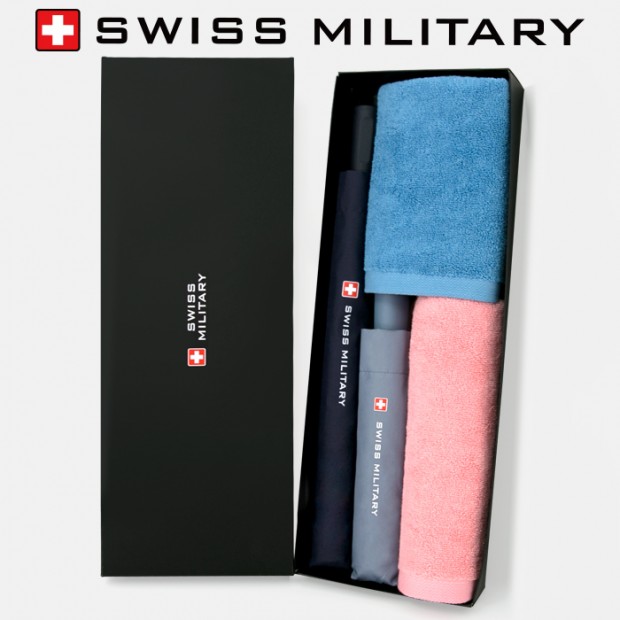 • 스위스밀리터리 친환경 2단자동+3단수동 우산+150g타올 2P 세트