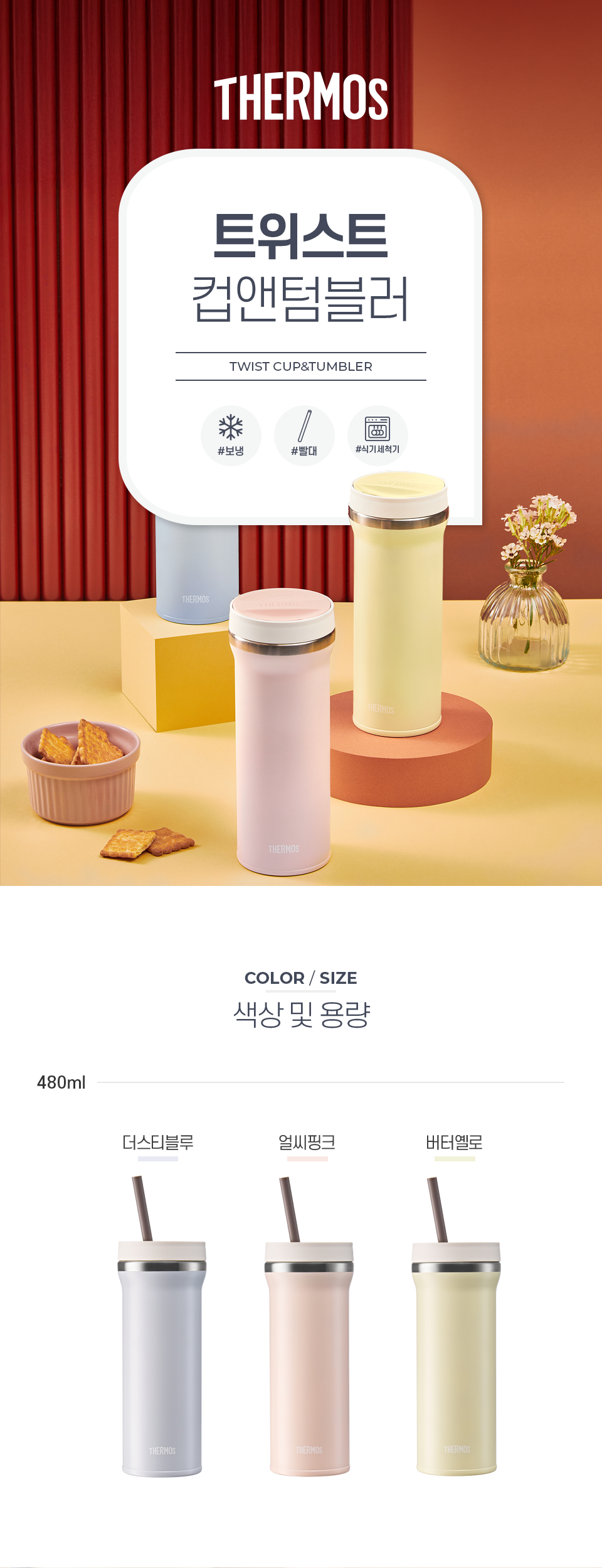 • [써모스] 트위스트 컵앤텀블러 480ml TKHB-480K