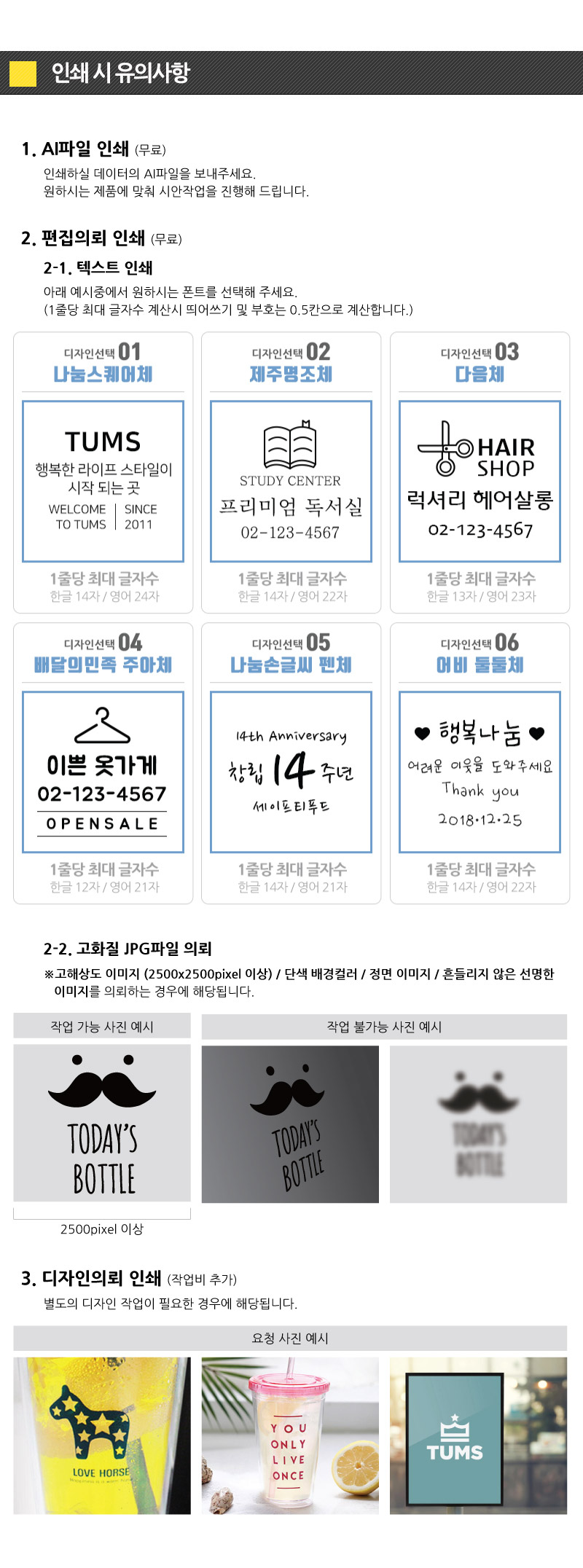 • 국내택배 배송비는 무료배송을 원칙으로 하나 제작상품에 따라 상이하게 적용될 수 있습니다.