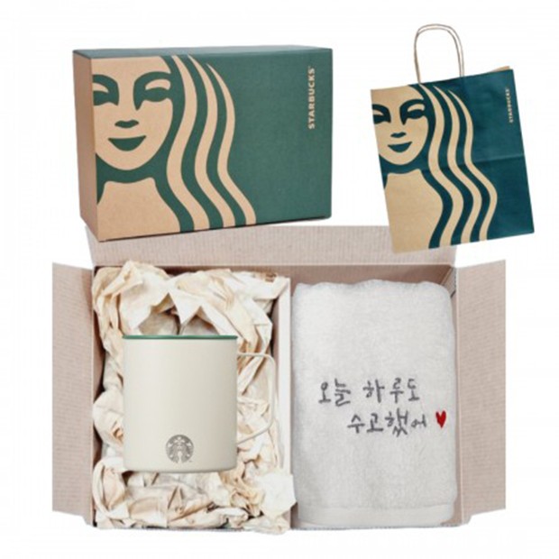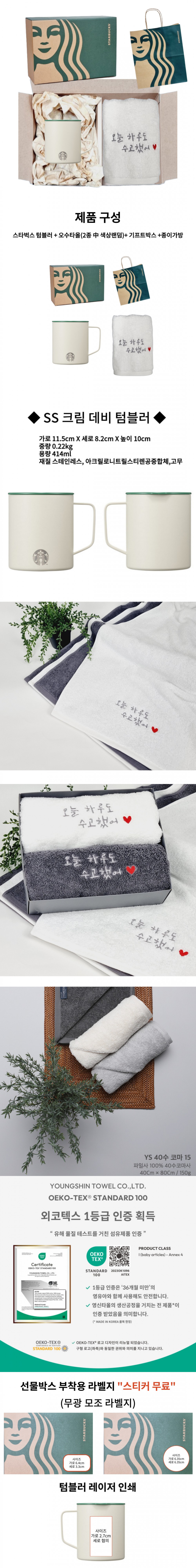 • 스타벅스 SS 크림 데비 텀블러 + 오수 영신 타올 호텔 수건 선물세트