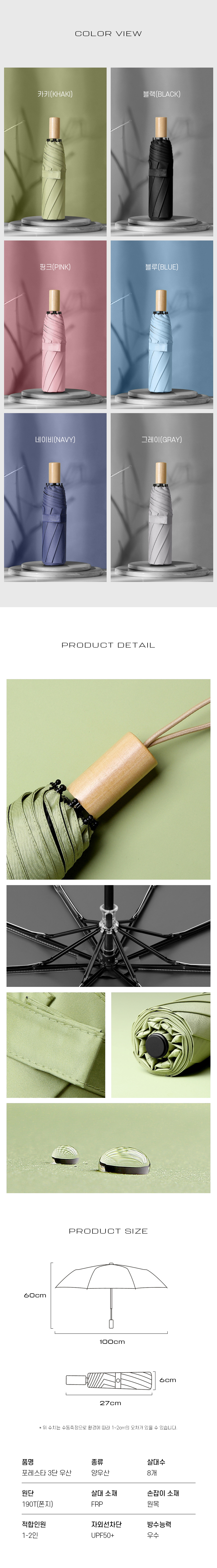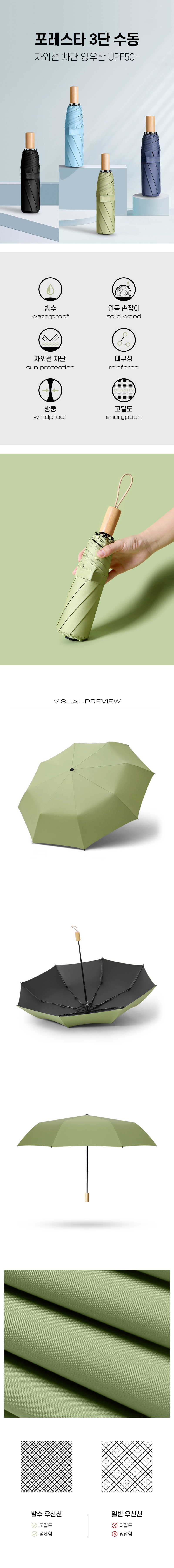 • 포레스타 8K 3단 수동 양우산 암막 UV코팅(UPF50+)