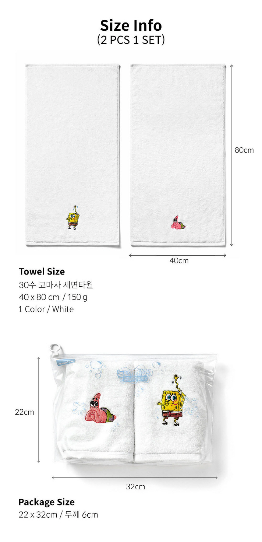 • 스폰지밥 캐릭터 화이트 세면타올 2P