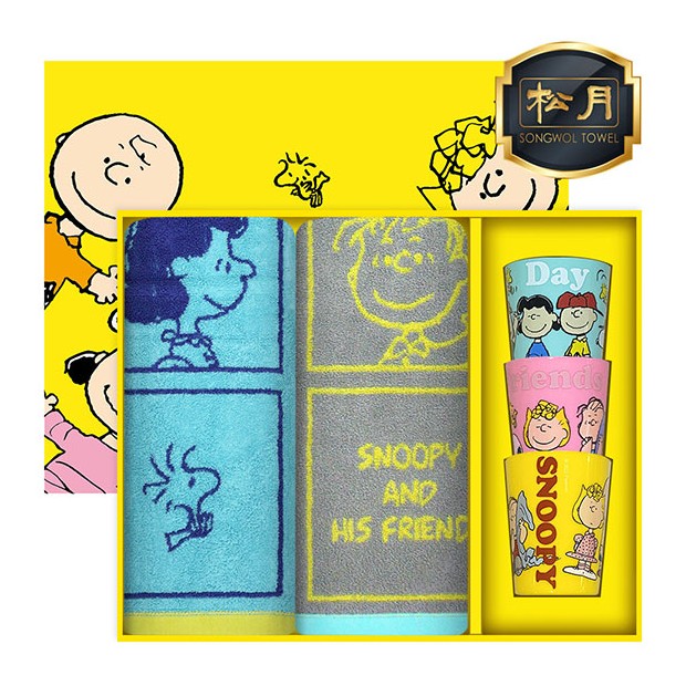 • [스누피전용 타월 컵 세트] 스누피 카툰40 2장 스누피 3P 컵 세트