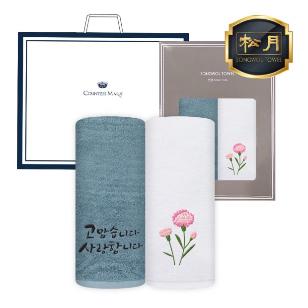 • (감사글, 카네이션 자수)호텔항균 150g 2P 세트(쇼핑백)