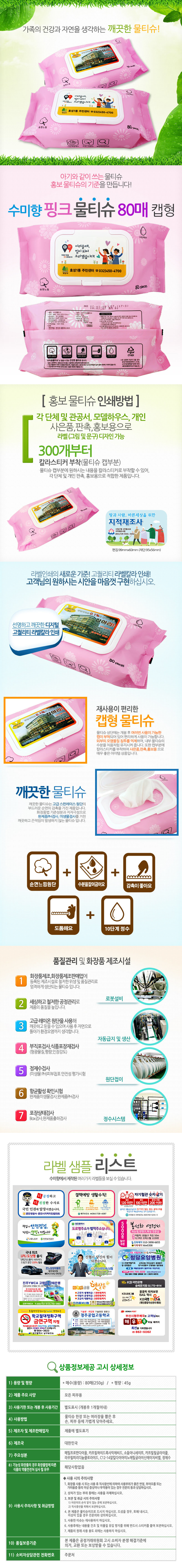 • 클린 수미향 핑크 물티슈 80매 캡형