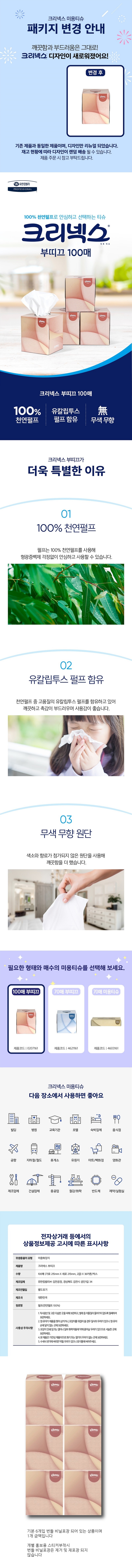 • 크리넥스 100%천연펄프 미용티슈 각티슈 100매입