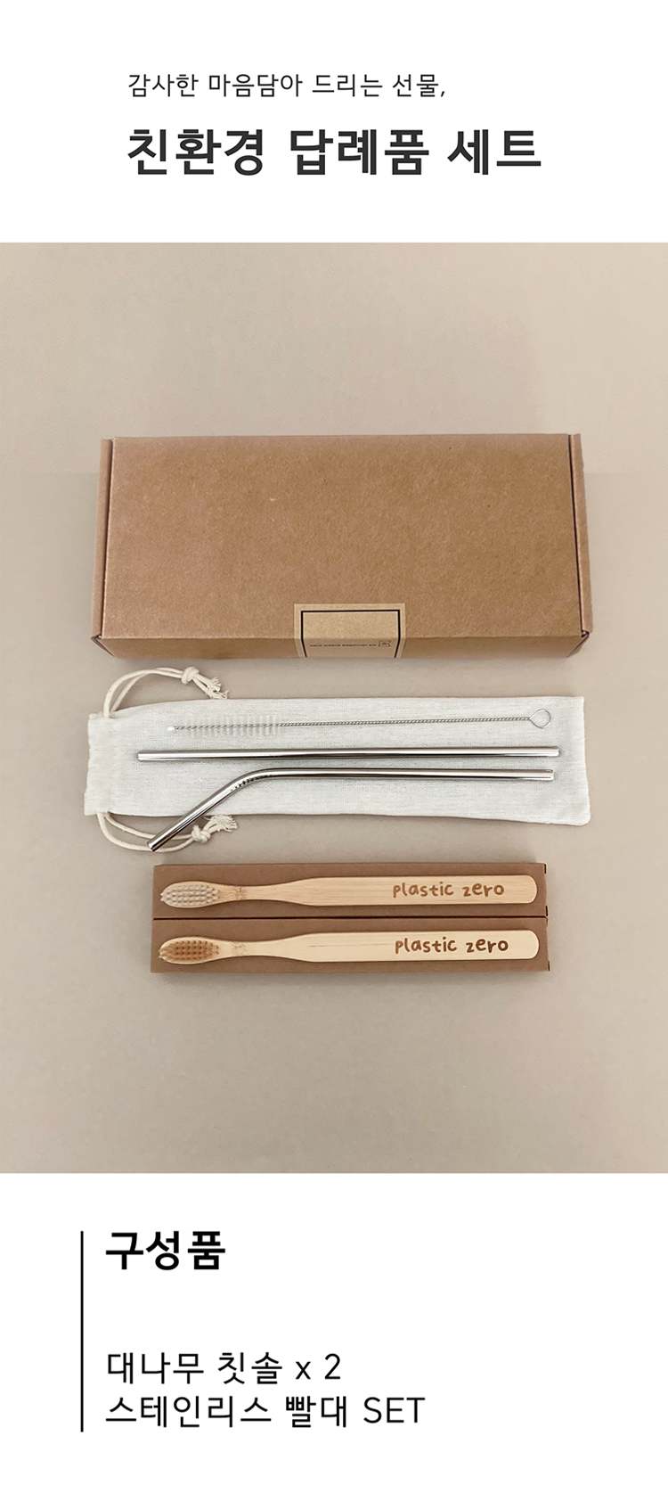 • 친환경 답례품 선물세트(대나무 칫솔+ 스테인레스빨대3종 세트)