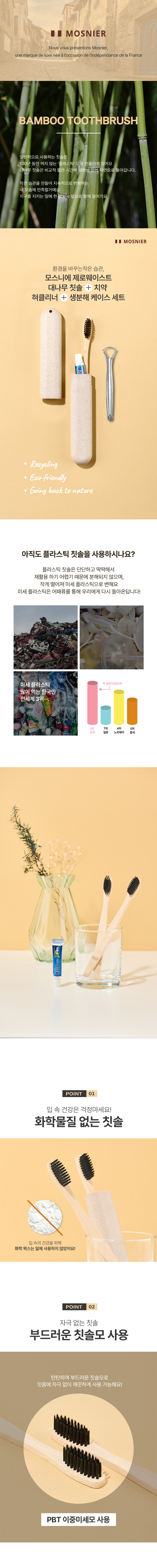 • 모스니에 대나무칫솔+혀클리너+치약5g+생분해케이스(소)세트