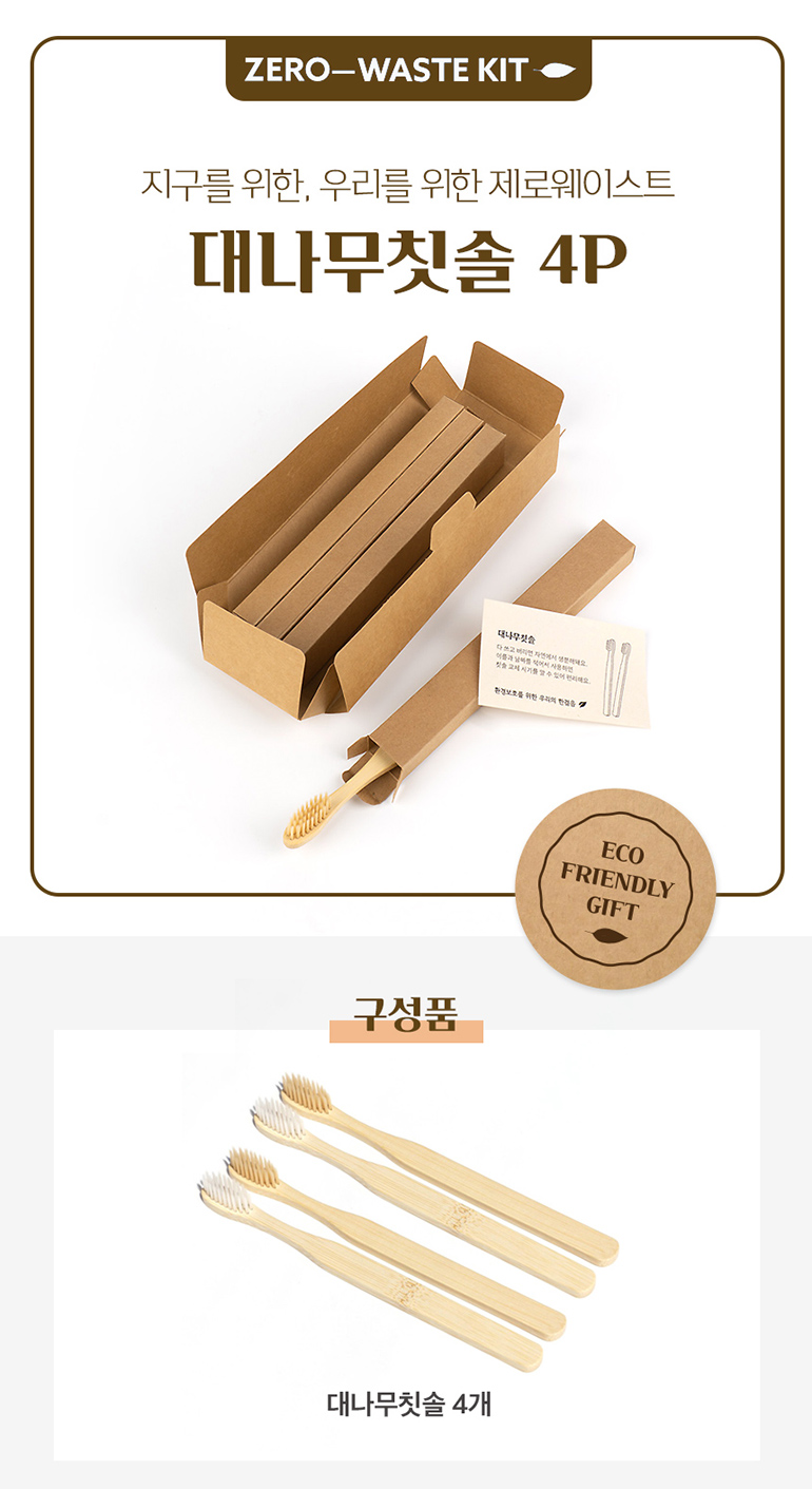 • 대나무칫솔 4p 세트 제로웨이스트 실속선물[인쇄무료]