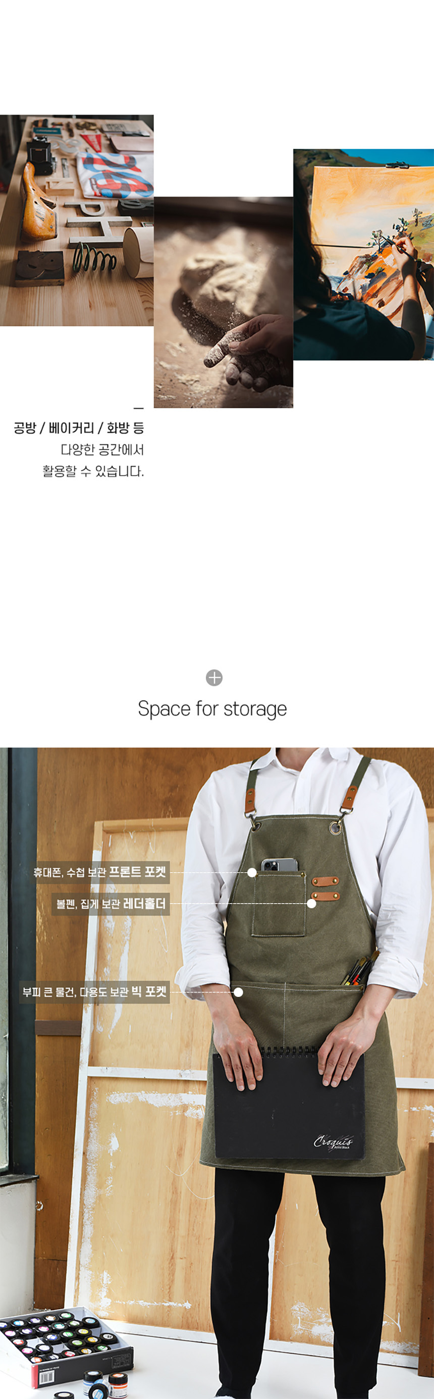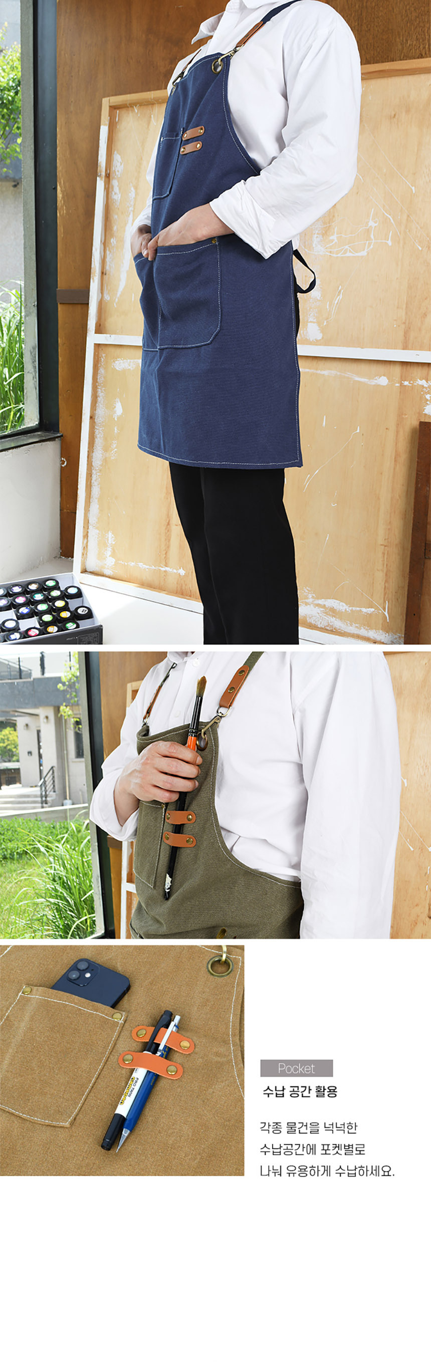 • 캔버스 앞치마 카페/공방/미용실/미술등