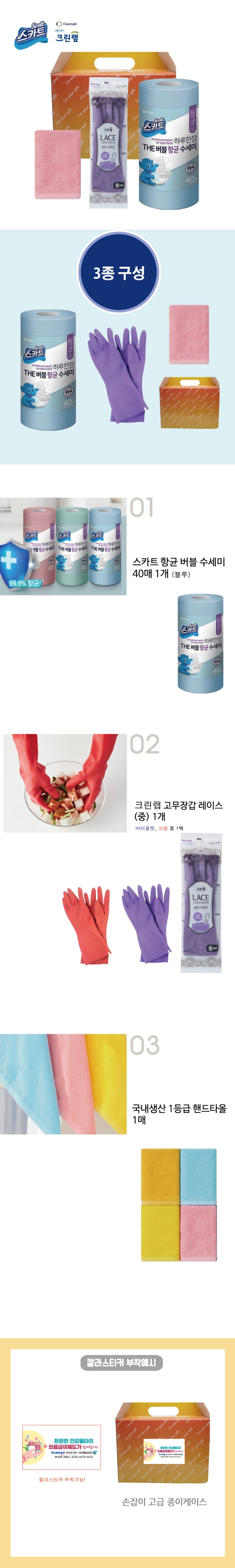 • 크리넥스스카트항균버블수세미+크린랩고무장갑중형1개+주방타올 (3종) [크린랲]