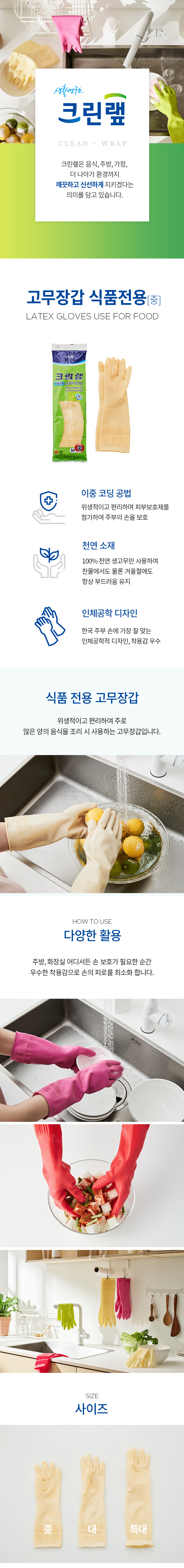 • [크린랩] 고무장갑 식품전용 (중) 주방용품