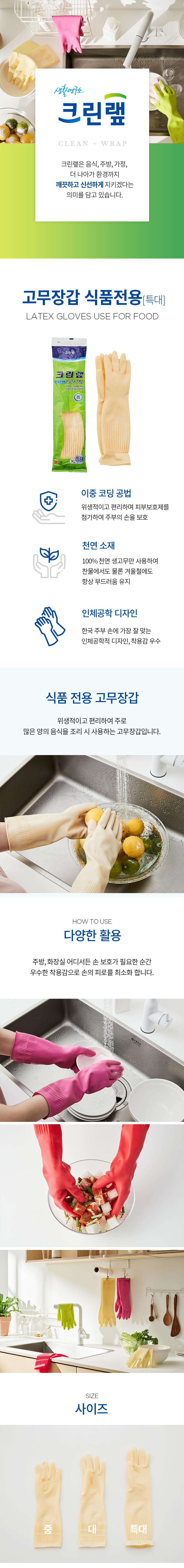 • [크린랩] 고무장갑 식품전용 (특대) 주방용품