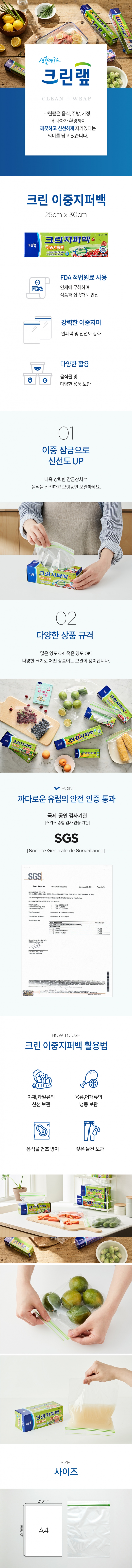 • 크린랩 이중지퍼백 25x30x20매 대형
