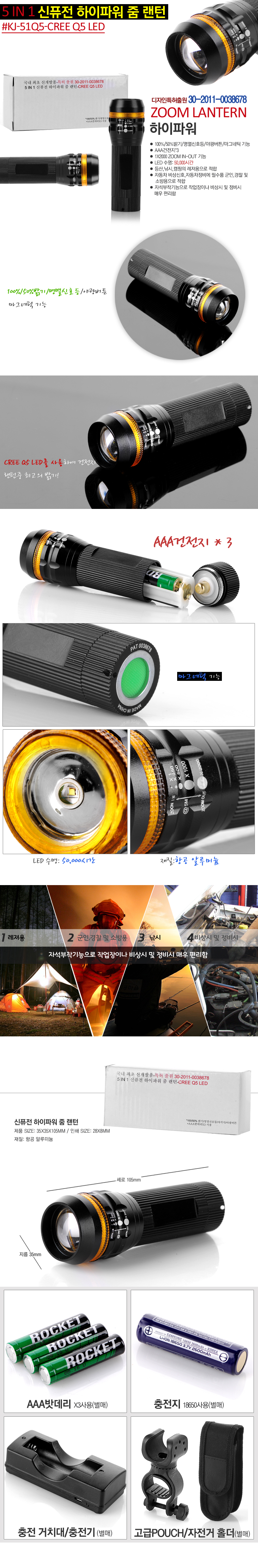 • 5 IN 1 신퓨전 하이파워 줌랜턴
