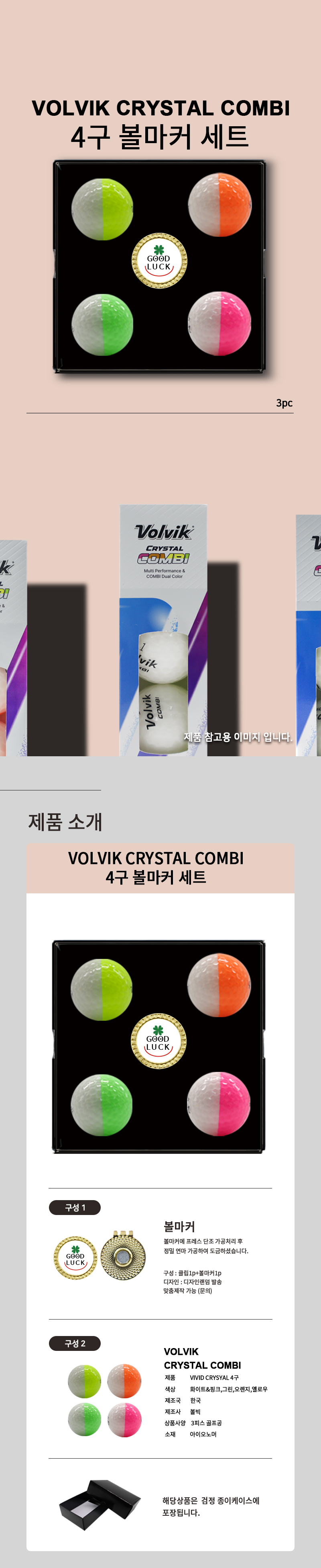 • 볼빅 크리스탈 콤비 4구 볼마커세트 (3pc) 반반 골프공 combi
