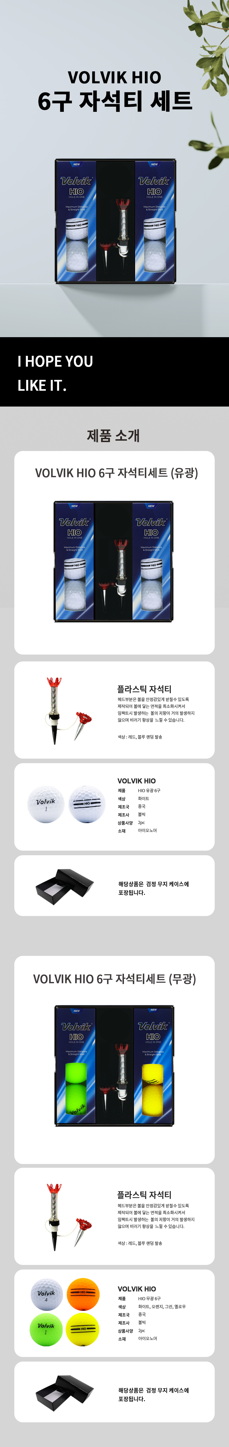• 볼빅 하이오 6구 자석티 세트 (2pc) 골프공