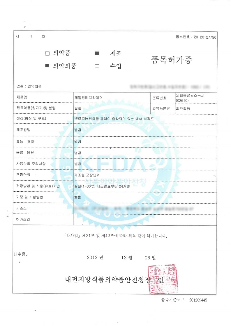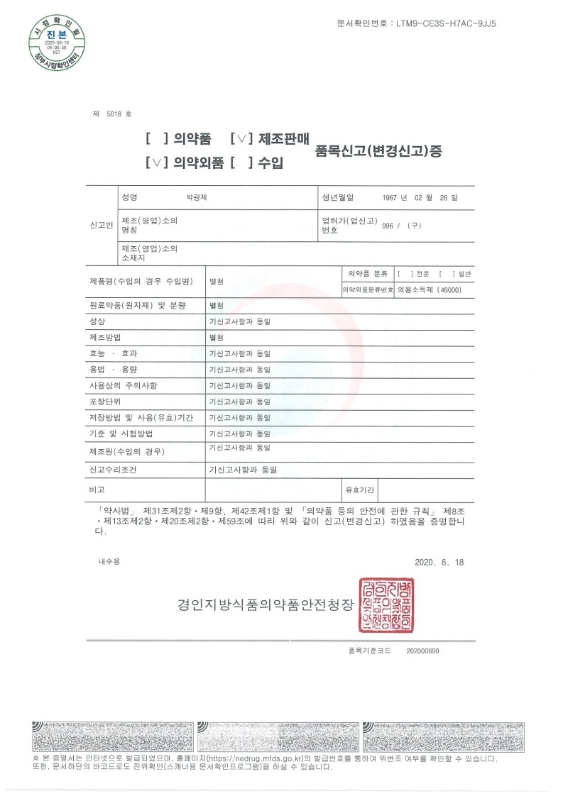 마스크 품목기준코드 202001492/손소독젤 202000690/손소독티슈 201209445