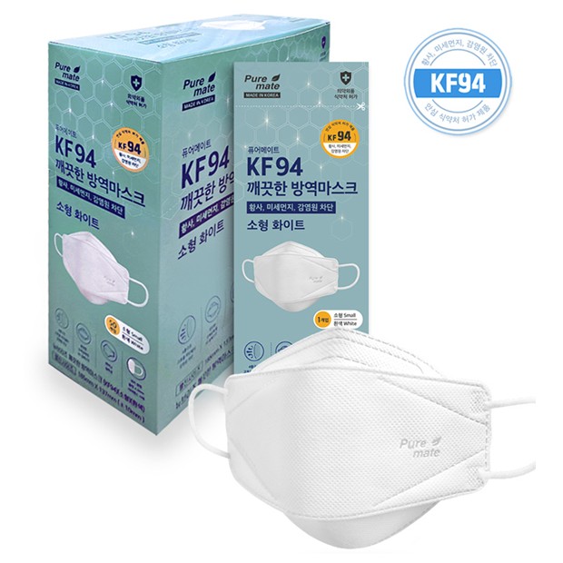 • 퓨어메이트 뉴브리즈 화이트 KF94 마스크 소형 1매 개별포장