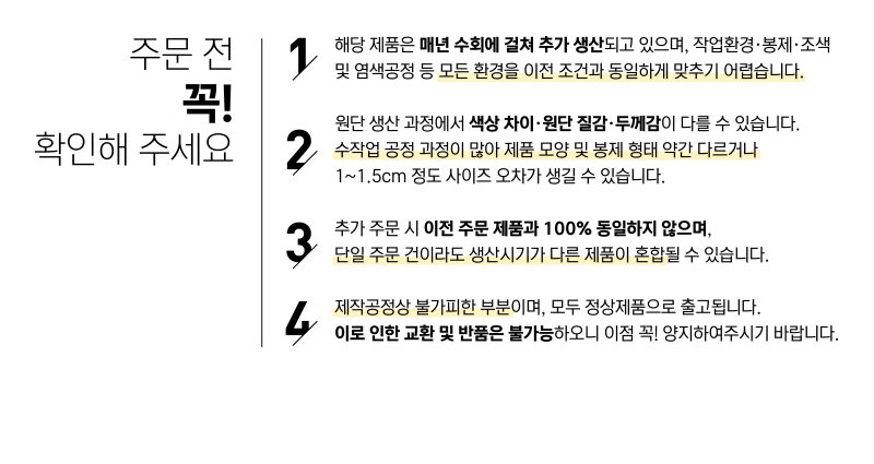 • 고객 변심으로 인한 교환, 반품의 경우 배송비는 구매자가 부담합니다.