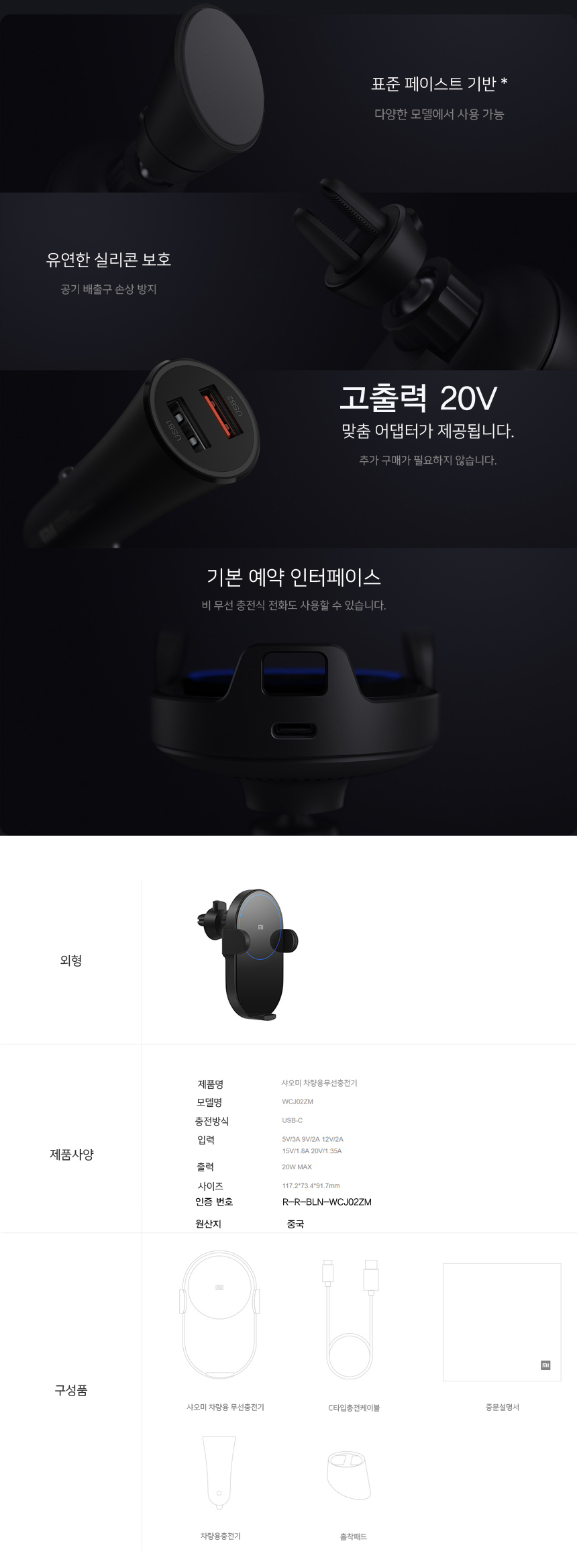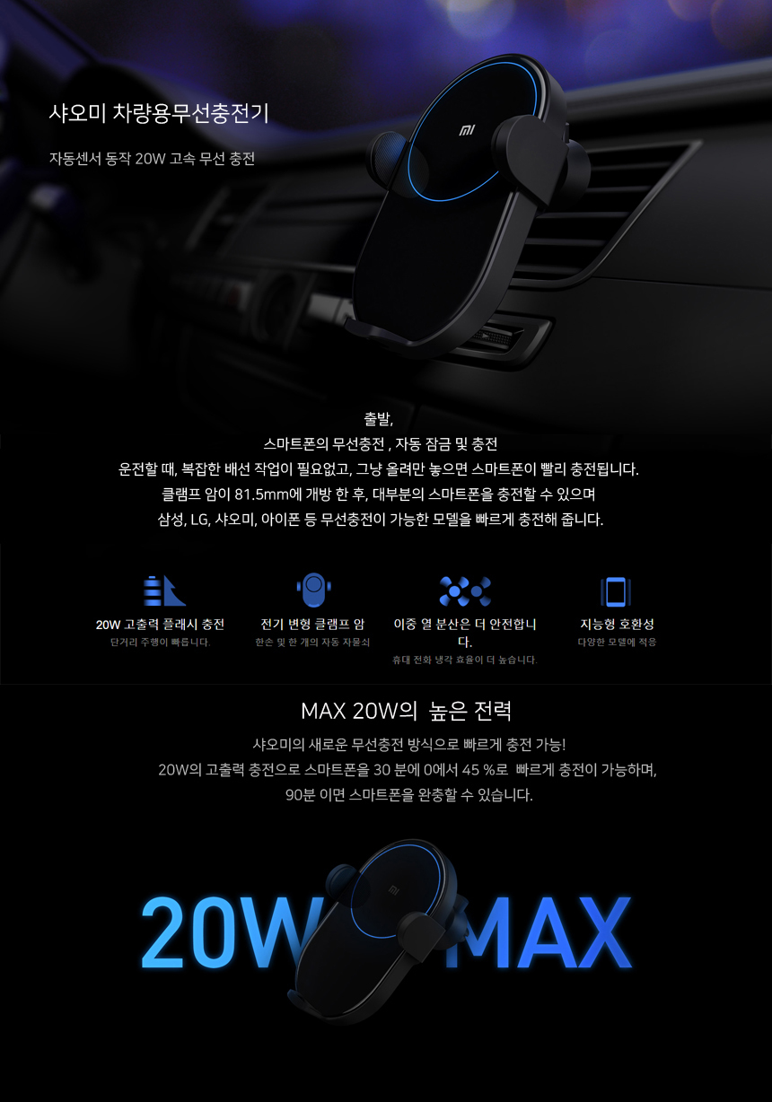 • 샤오미 차량용 자동 무선충전거치대 20W