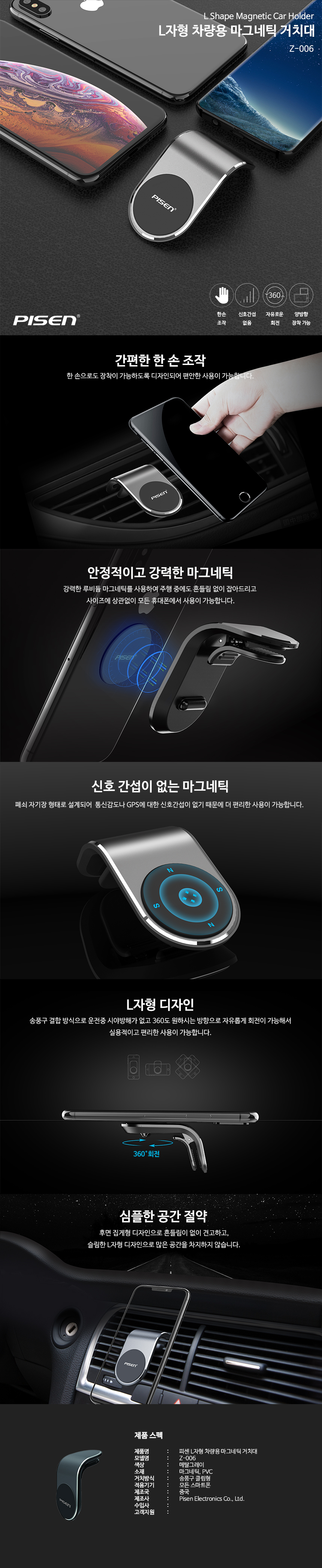 • 피센 L자형 차량용 마그네틱 핸드폰 거치대 Z-006