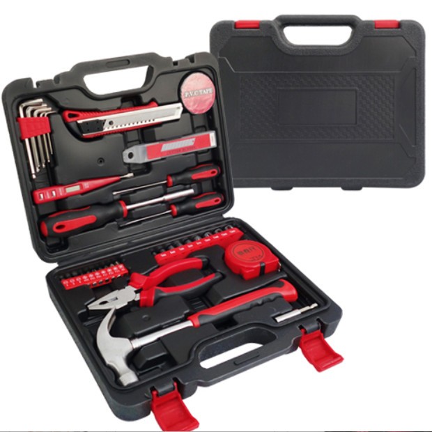 15pcs(망치, 펜치, 줄자3M, 복스알9pcs(5~13 MM), 드라이버 비트 10pcs, 드라이버(+,_) 라쳇 핸들, 검전기, 볼L렌종 5pcs(2~6), 커터칼, 커터칼심, 절연테이프, 케이스)