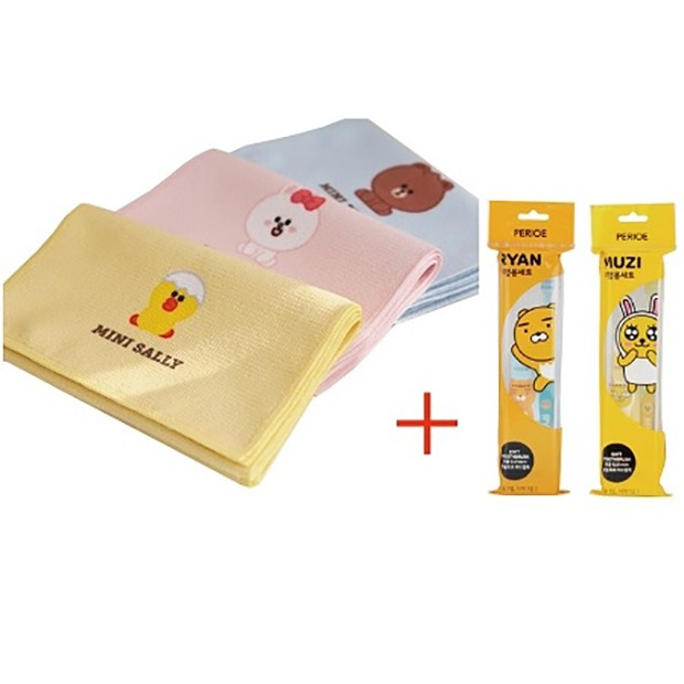 라인프렌즈 스포츠타올수건1P, 카카오프렌즈 양치세트1P, 종이케이스