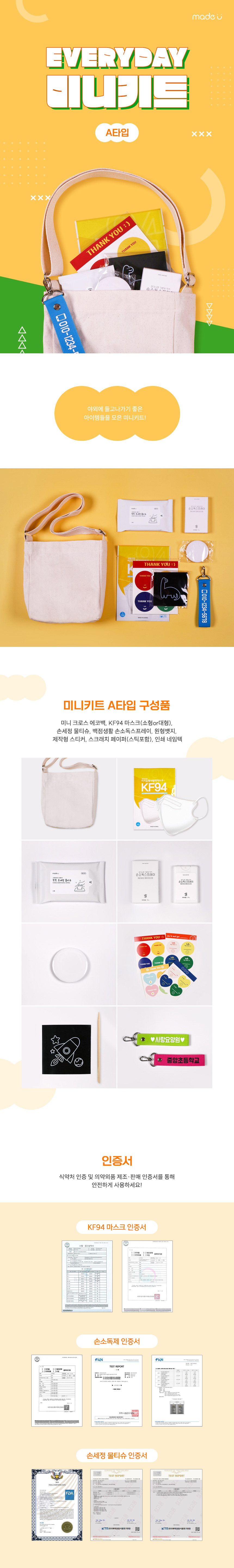 미니크로스에코백,KF94마스크(소형or대형),손세정물티슈,백점생활손소독스프레이,원형뱃지,제작형스티커,스크래치페이퍼(스틱포함),인쇄네임택