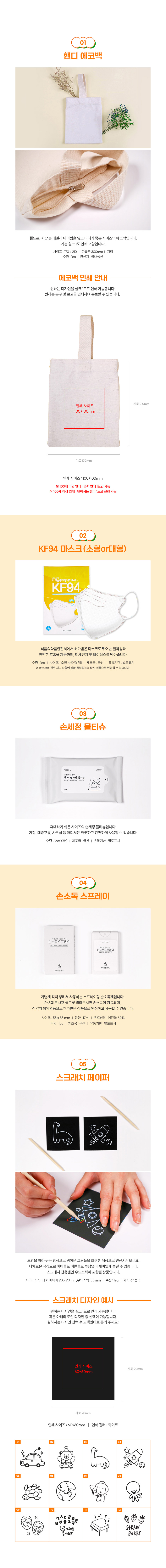 핸디에코백,KF94마스크(소형or대형),손세정물티슈,백점생활손소독스프레이,원형뱃지,제작형스티커,스크래치페이퍼(스틱포함)