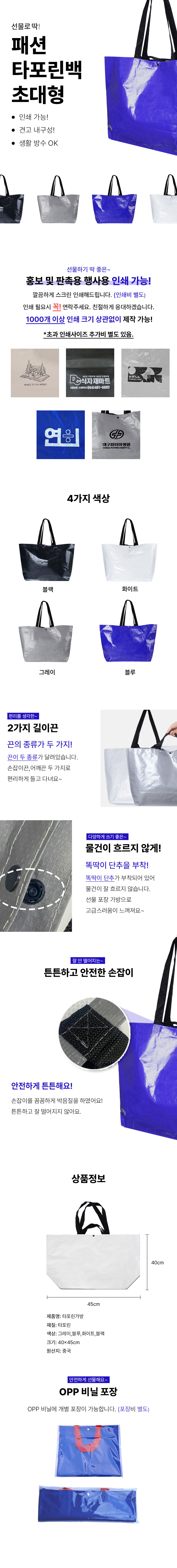 • 패션 타포린가방, 시장가방, 장바구니, 타포린백, 유광 특대형 (40*45cm)