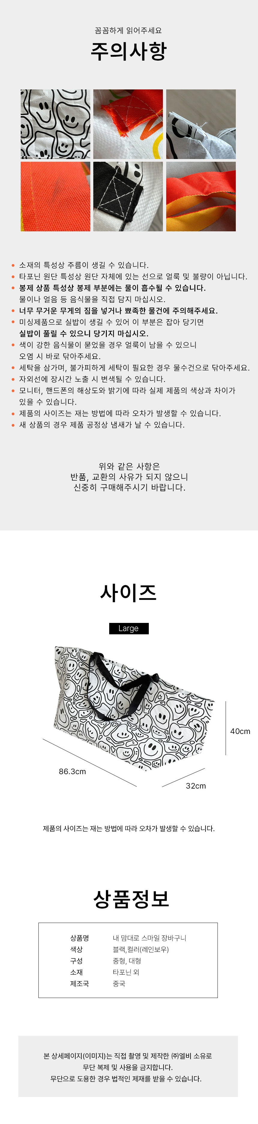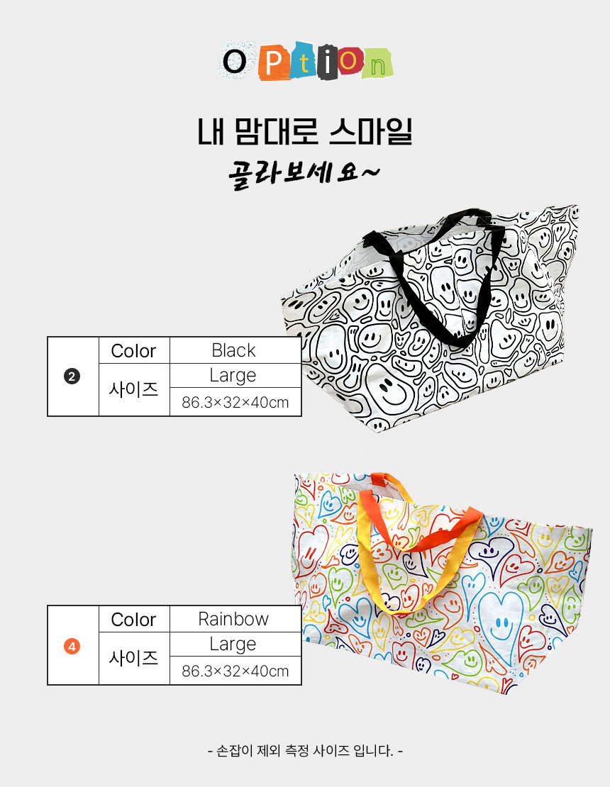 • 내 맘대로 스마일 장바구니 L 사이즈 (블랙 / 컬러)