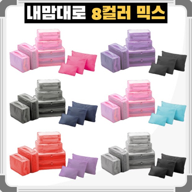 • 내맘대로 8컬러 믹스 여행용파우치 9종세트 캐리어정리 실속구성