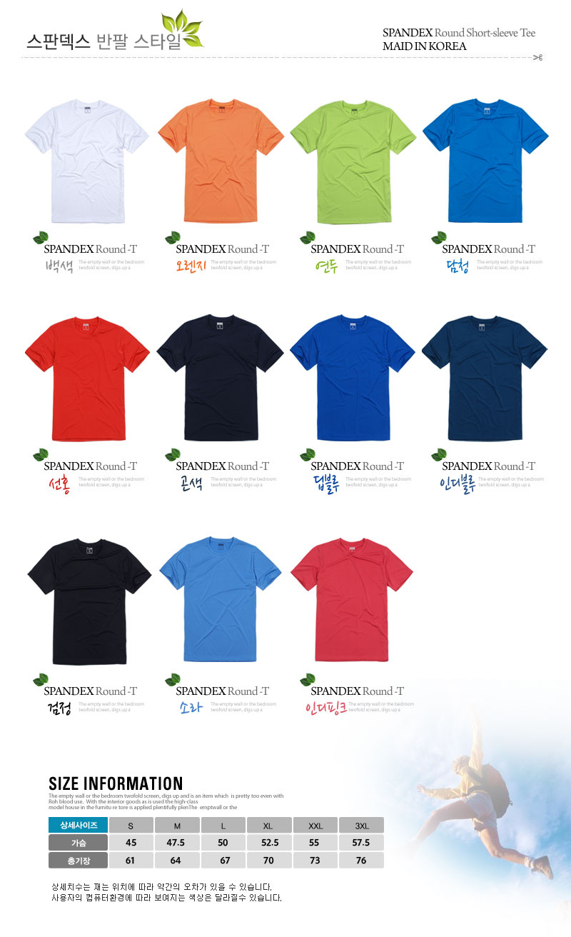 반팔 / 오렌지,소라,인디핑크,딥블루,연두,담청,검정,인디블루,백색,선홍,곤색,멜란지