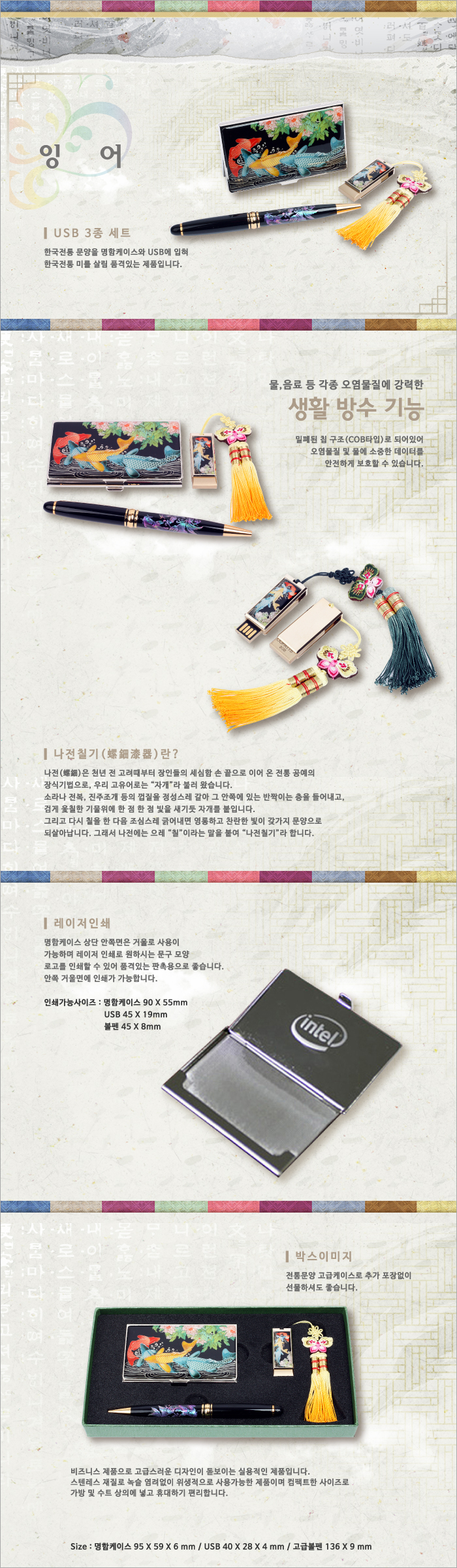 명함케이스 95*59*6mm / 자개볼펜 136*9mm / USB 40*28*4mm