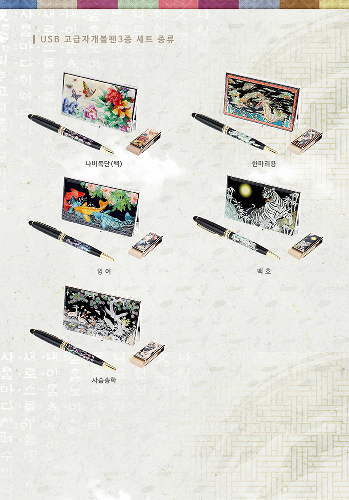 명함케이스 95*59*6mm , 자개볼펜 136*9mm , USB 40*28*4mm / Iron(니켈도금),천연자개(에폭시코팅)
