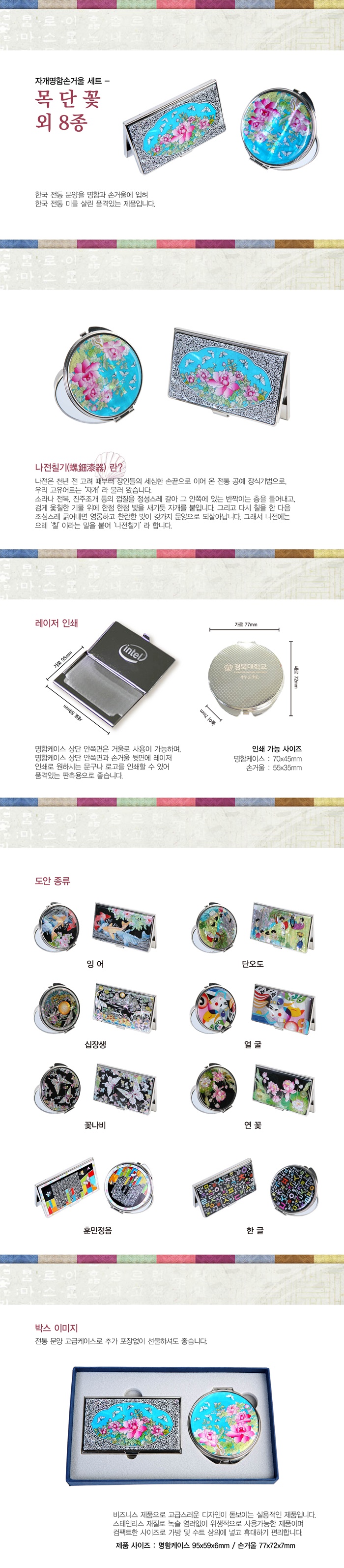 명함케이스 95*59*6mm , 손거울 77*72*7mm / 스테인레스,Iron(니켈도금),천연자개(에폭시코팅)