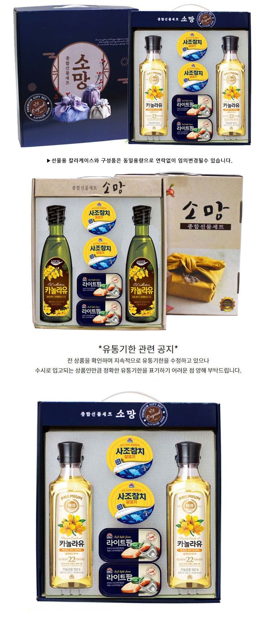 •  6p 카놀라유2병+ 사조참치2+ 라이트팜2 명절 선물 세트/ 스팸 해바라기유 식용유 설선물 햄선물 햄세트 추석
