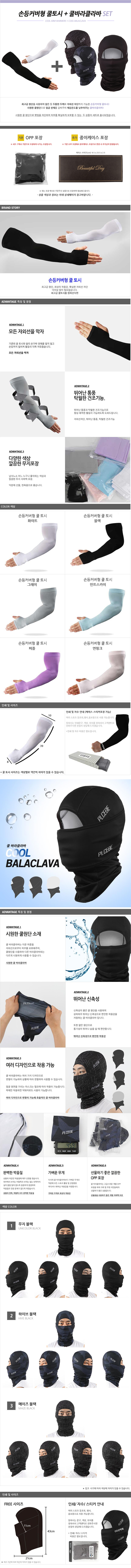 쿨바라클라바:43*21손등커버형쿨토시:손등부분:8cm, 길이:39cm, 윗부분:10cm / 쿨바라클라바:폴리에스터,스판손등커버형쿨토시:폴리우레탄, 나일론
