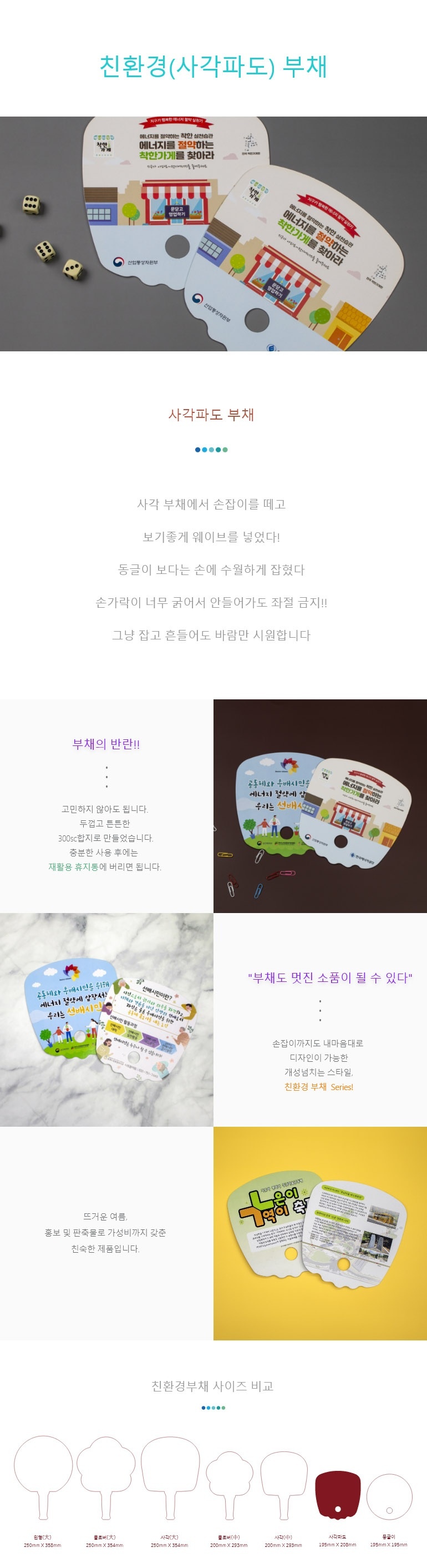 • 종이부채 친환경부채 사각파도 (두꺼운종이)