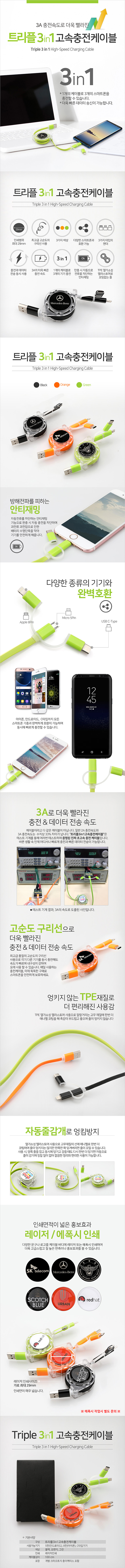 트리플3in1고속충전케이블 / 블랙,그린,오렌지