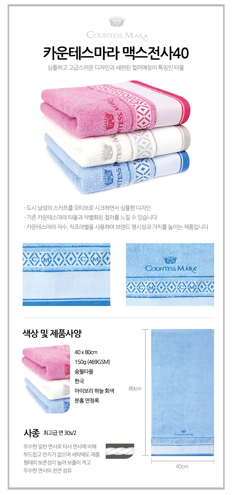 40*80cm , 150g / 면 100% 최고급 면 30수