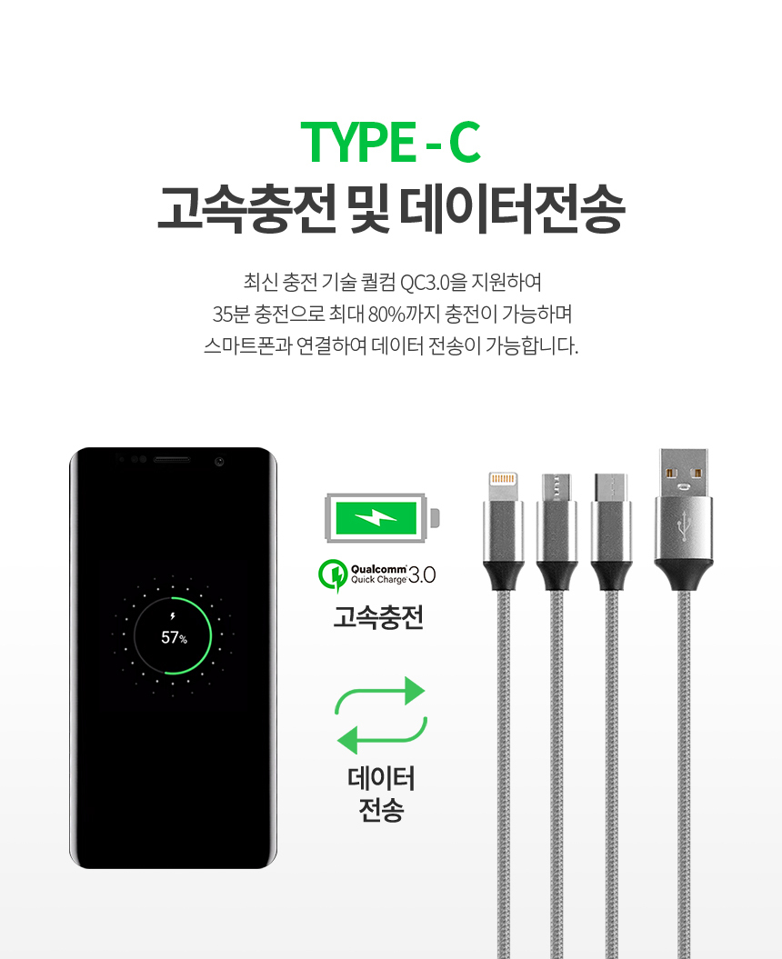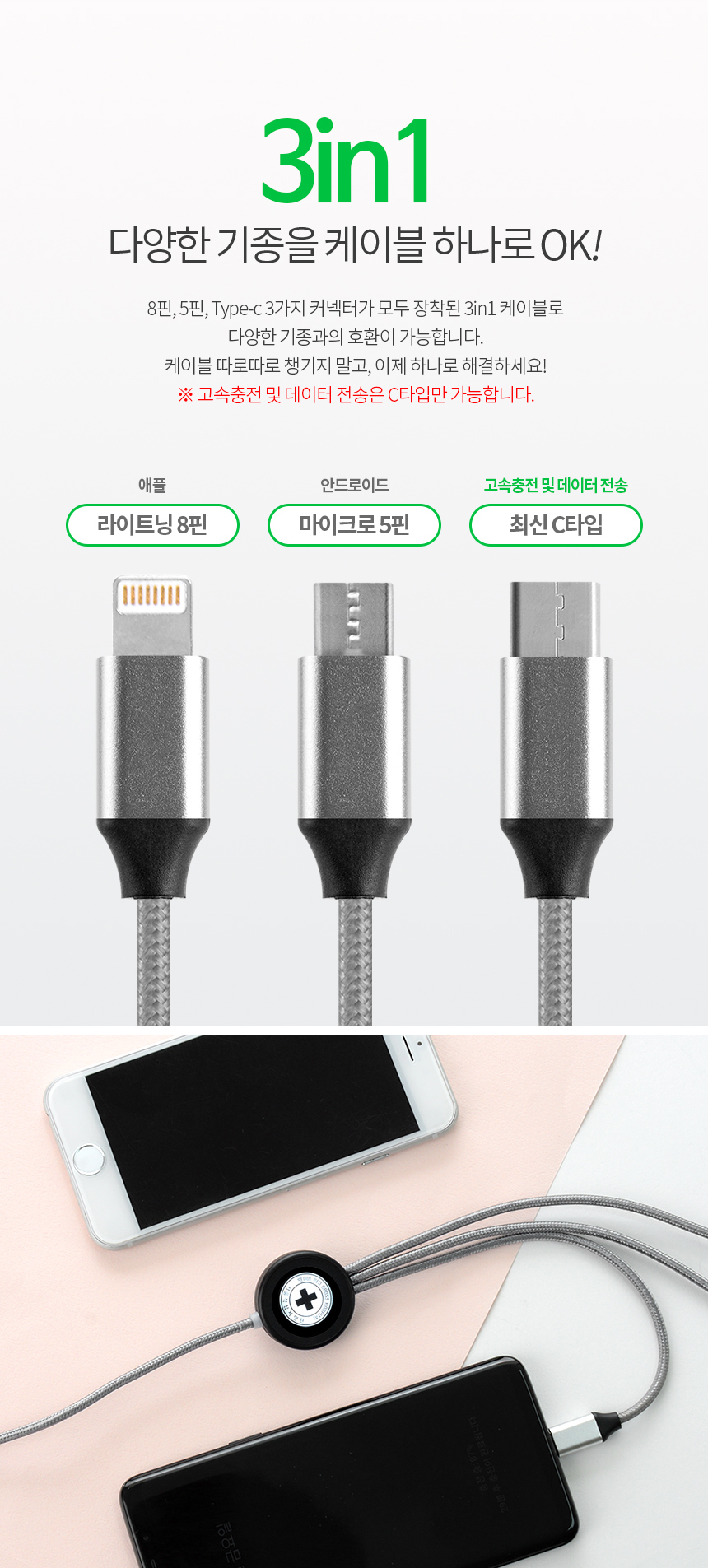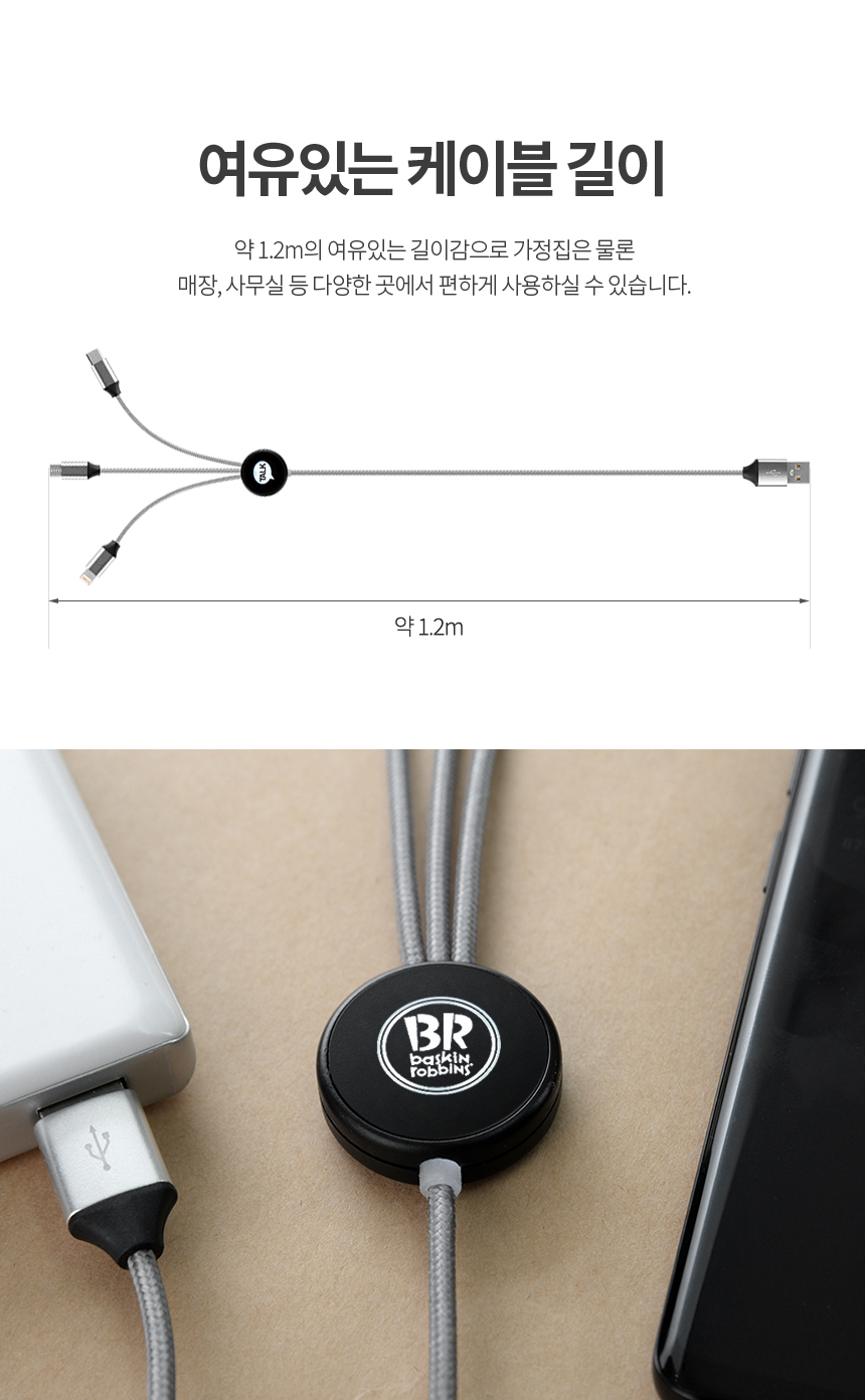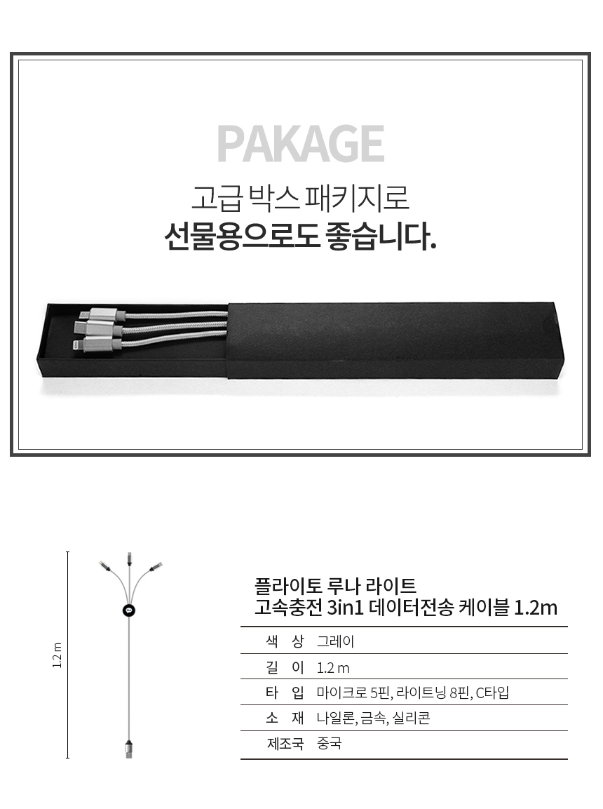 • 플라이토 루나 라이트  고속충전 3in1 케이블 1.2m