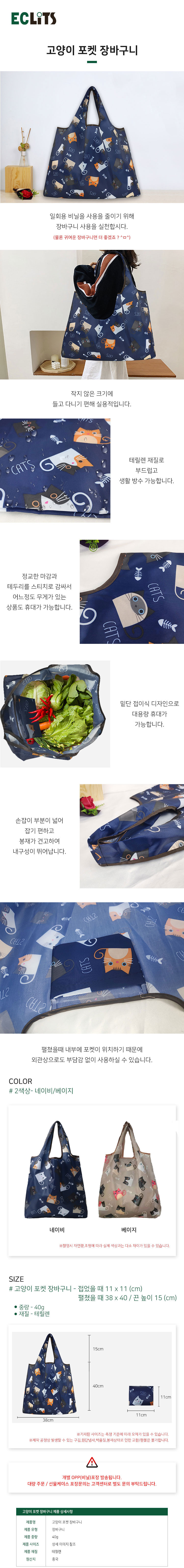 • 에클리츠 고양이 포켓 장바구니