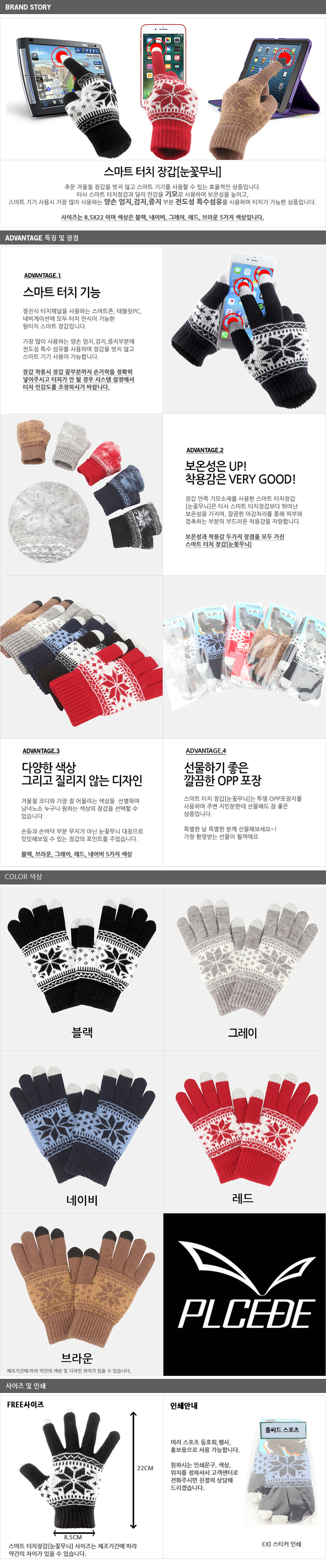 스마트 터치 눈꽃장갑 한쌍+opp포장 / 눈꽃무늬 (그레이, 블랙, 레드, 브라운, 네이비)
