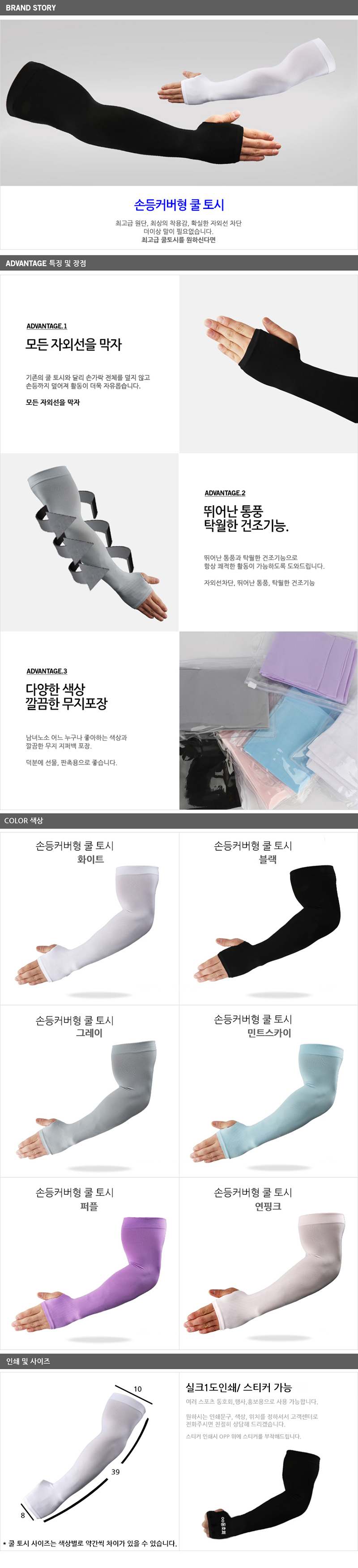 무지 손등커버형 쿨토시+지퍼백 포장 / 화이트, 블랙, 그레이, 민트스카이, 퍼플, 연핑크