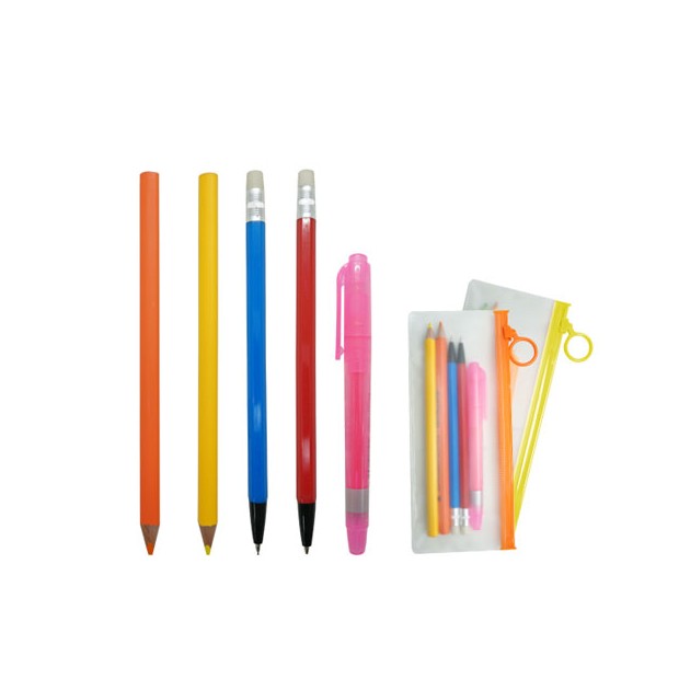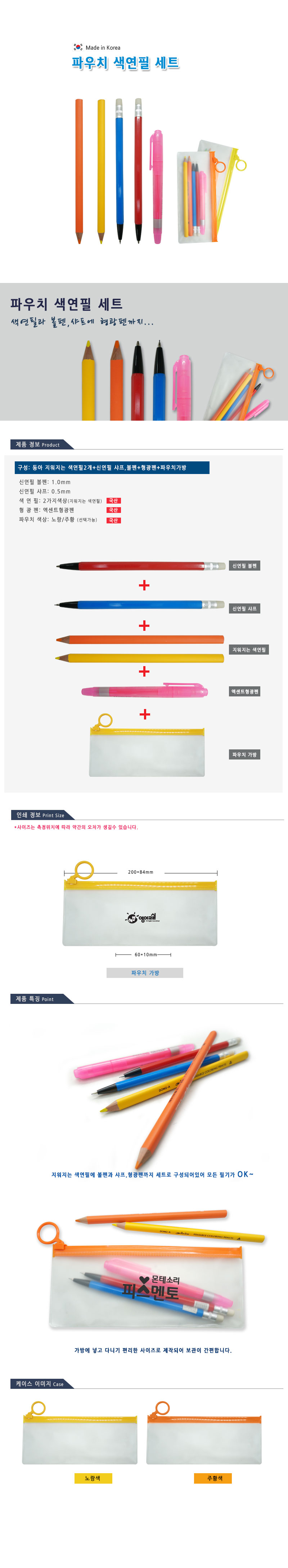 볼펜1P,샤프1P,색연필2P,형광펜1P,케이스 / 케이스노랑/주황