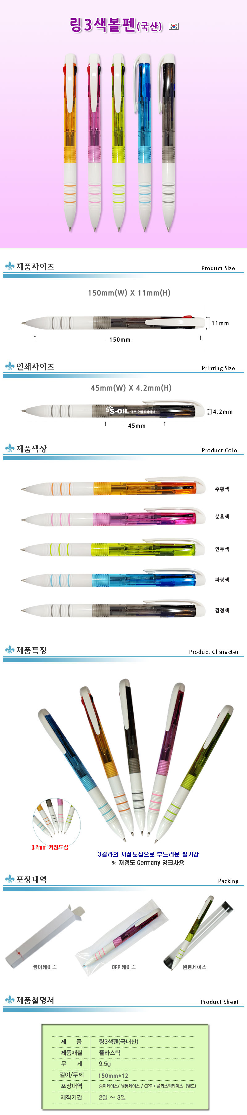 • 링3색볼펜(국내산)