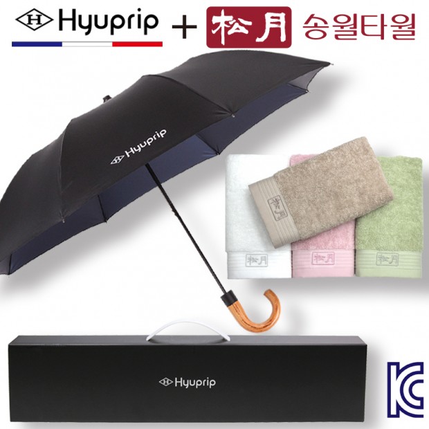 • 협립 2단 내부펄 원목 곡자손 자동우산+송월타월세트