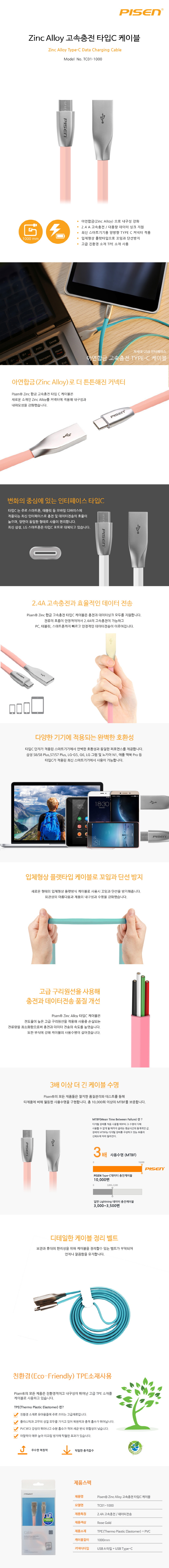 • 피센 타입C 아연 합금 케이블 TC01-1000